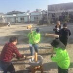 2025.12.3(水) 水田事業(餅つき)を大坪保育園の園児と一緒に行いました。