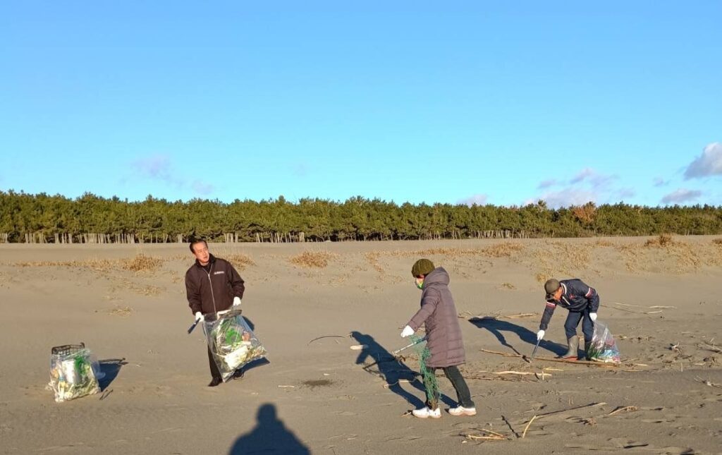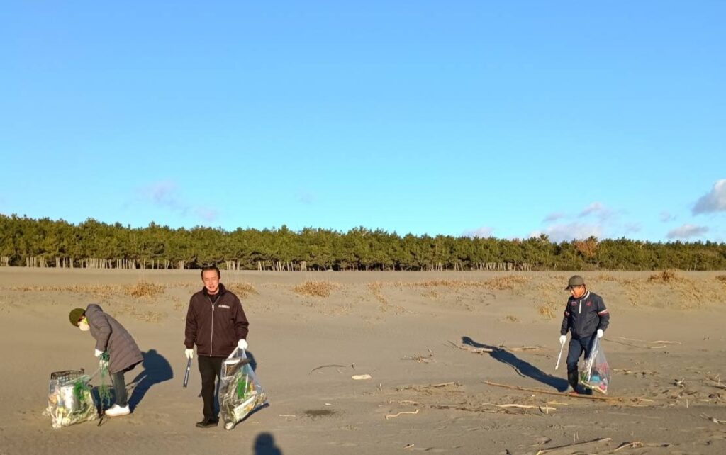 サンビーチ北側の早朝清掃を行い、8袋分のゴミを回収しました。