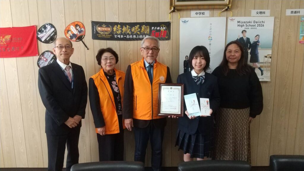 宮崎第一高等学校 校長室にて平石紗彩さんへヘアードネーション感謝状贈呈を行いました。