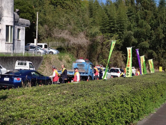 交通安全の呼びかけともにドライバーの皆さまへ約200本のお茶を配布いたしました。